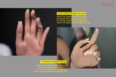 De gelede vingerbeentjes hebben een ‘kapje’ op elke vinger om te voorkomen dat de vingertoppen door het TPE heen prikken. Dat is een geweldige manier, maar ze kunnen ook op dezelfde manier door de vingertoppen prikken als gewone vingers gemaakt van slangen in geval van onjuiste bescherming of heftige impact. Het voordeel op dit moment is echter dat als de gelede vinger bij het gewricht breekt, deze grotendeels kan worden hersteld door de schroef vast te draaien. aimerdoll ondersteunt gelede vingerskeletten voor sekspoppen van meer dan 150 cm.